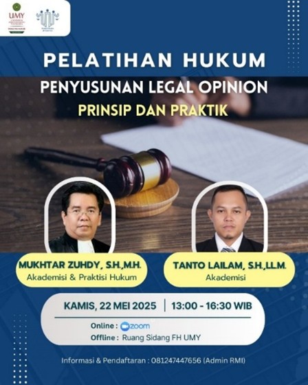 Program pengabdian ini memfokuskan pada peningkatan kompetensi riset dan analisis hukum para advokat muda dalam menyusun legal opinion di Perkumpulan Rumah Muda Integritas. Pengabdian ini merupakan kolaborasi untuk menyelesaikan persoalan-persoalan yang dialami advokat muda dalam menyusun legal opinion, khususnya legal opinion dalam kasus-kasus yang spesifik. Pelatihan ini dilatarbelakangi dengan kondisi bahwa advokat muda tersebut masih baru dilantik dan kurang memiliki pengalaman dalam menyusun legal opinion yang berkualitas. Tujuan dari penyelenggaraan pengabdian hukum ini agar advokat muda memiliki pengetahuan dan pengalaman menyusun legal opinion yang berkualitas. Selain itu, sebagai modal menjadi advokat profesional.